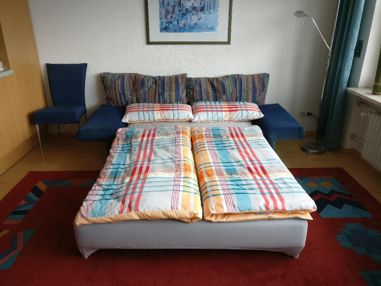Das Appartement hat einen Wohnraum mit Küchenzeile und einer Theke, einen abtrennbaren Schlafraum, ein Bad und ein separates WC. Es gibt außerdem eine Schlafcouch (Liegeflaeche 130 x 200) und eine separate Matratze (90 x 200), die man einfach auf den Boden im Wohnzimmer legen kann.