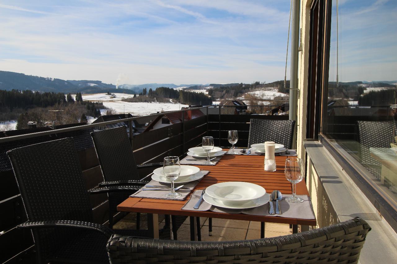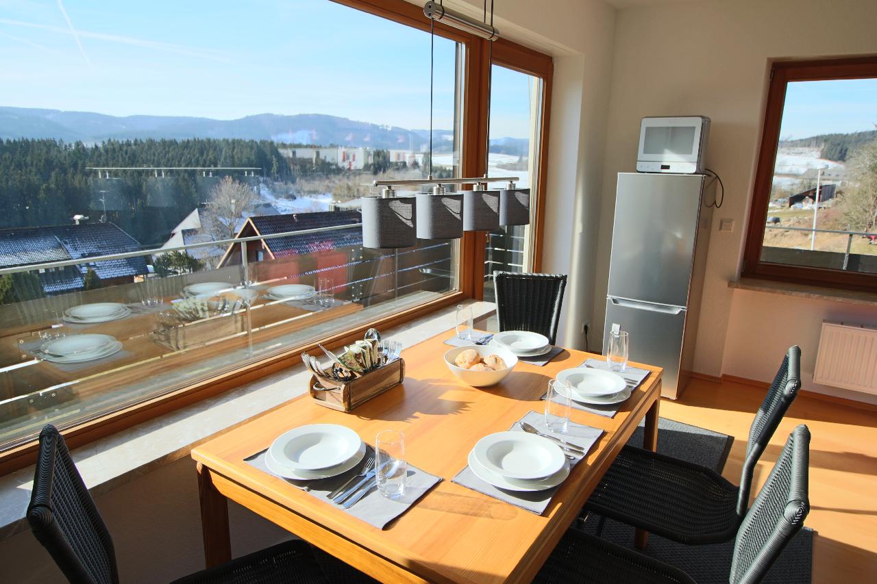Essbereich: Esstisch mit vier Stühlen und Panoramablick.