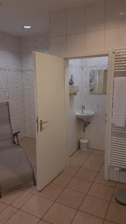 Sauna: gegen Gebühr (4 € für 2,5 h). Der Automat akzeptiert nur 1 €-Stücke.