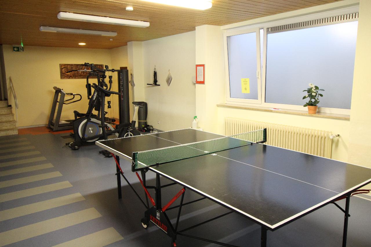 Fitnessbereich: Tischtennisplatte, Fitnessgeräte und WLAN ohne Gebühr.