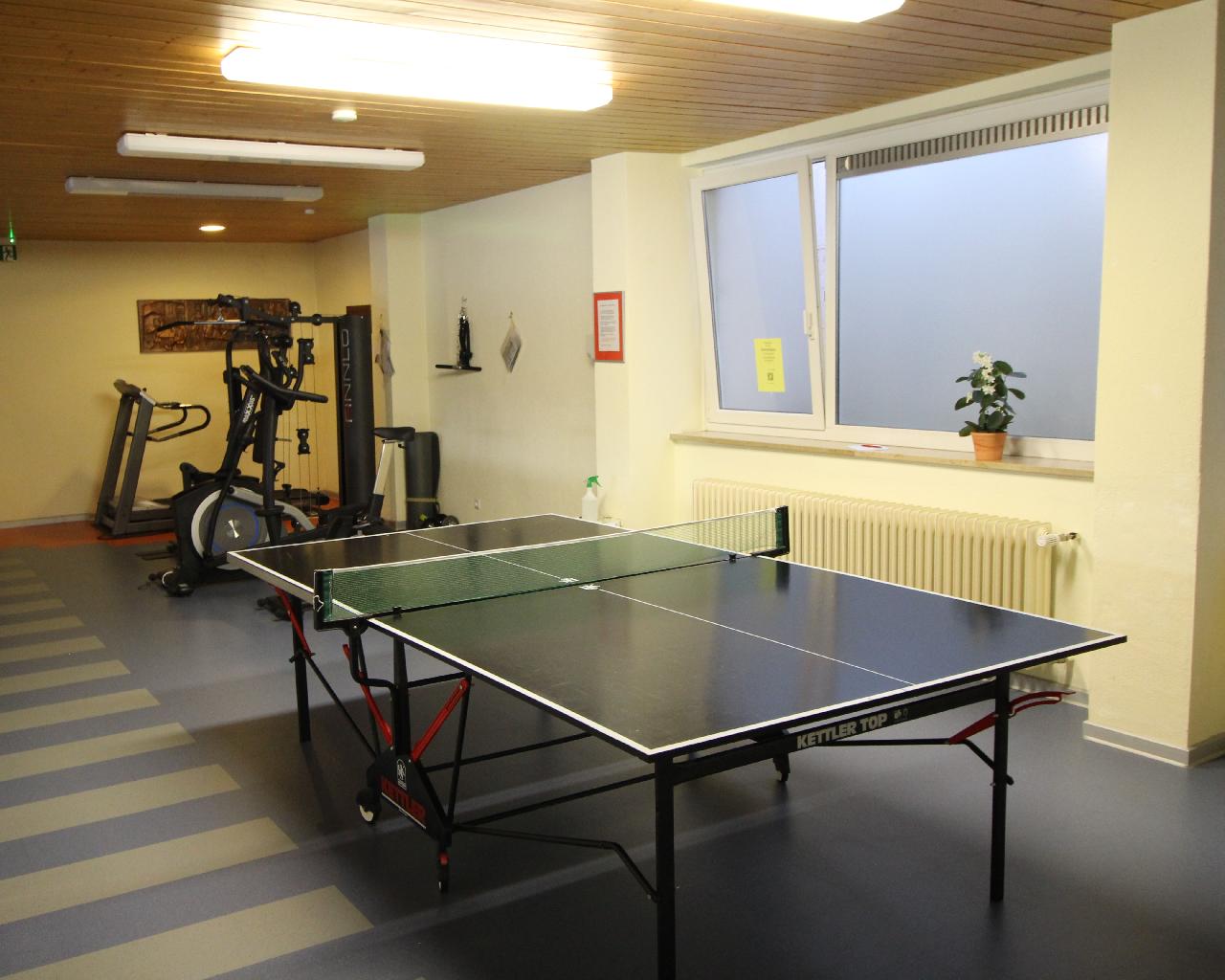 Der Fitnessraum mit Tischtennisplatte, Fitnessgeräten und Sitzecke ist von 7.30 Uhr bis 21 Uhr geöffnet. Bitte betreten Sie diesen Raum nicht mit Straßenschuhen.